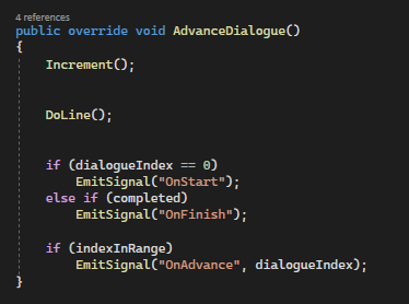 This is, functionally, my stand-in for the label system in Ren’Py – a start point in a chain of events which is publicly accessible to the rest the scene.
